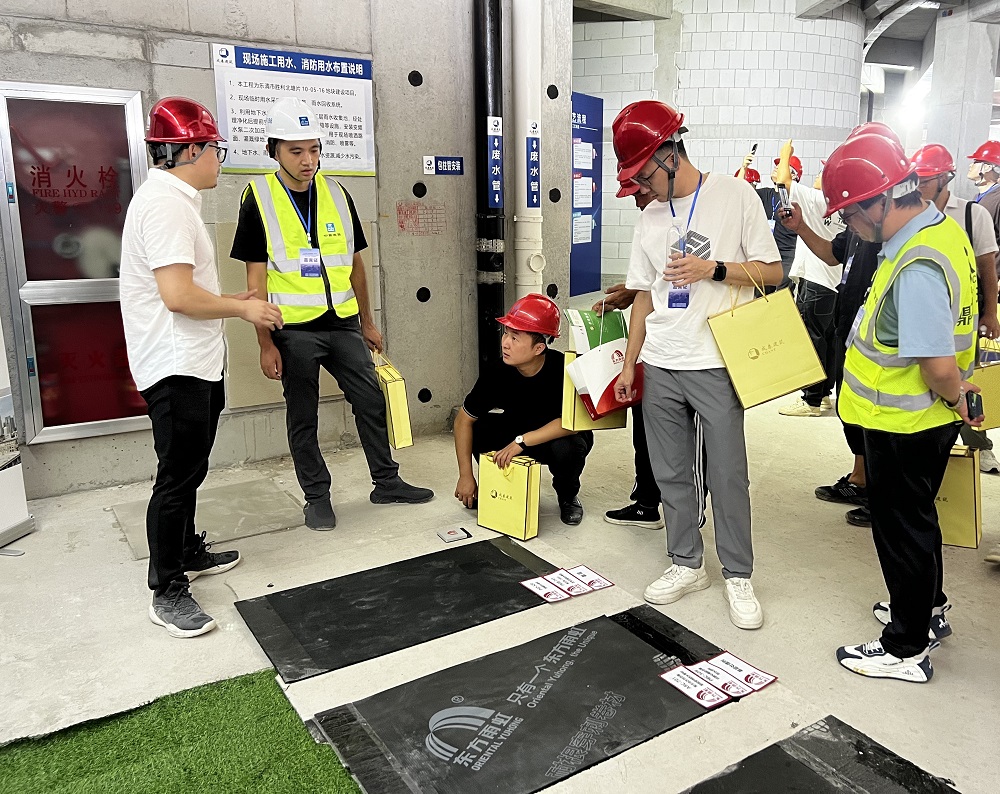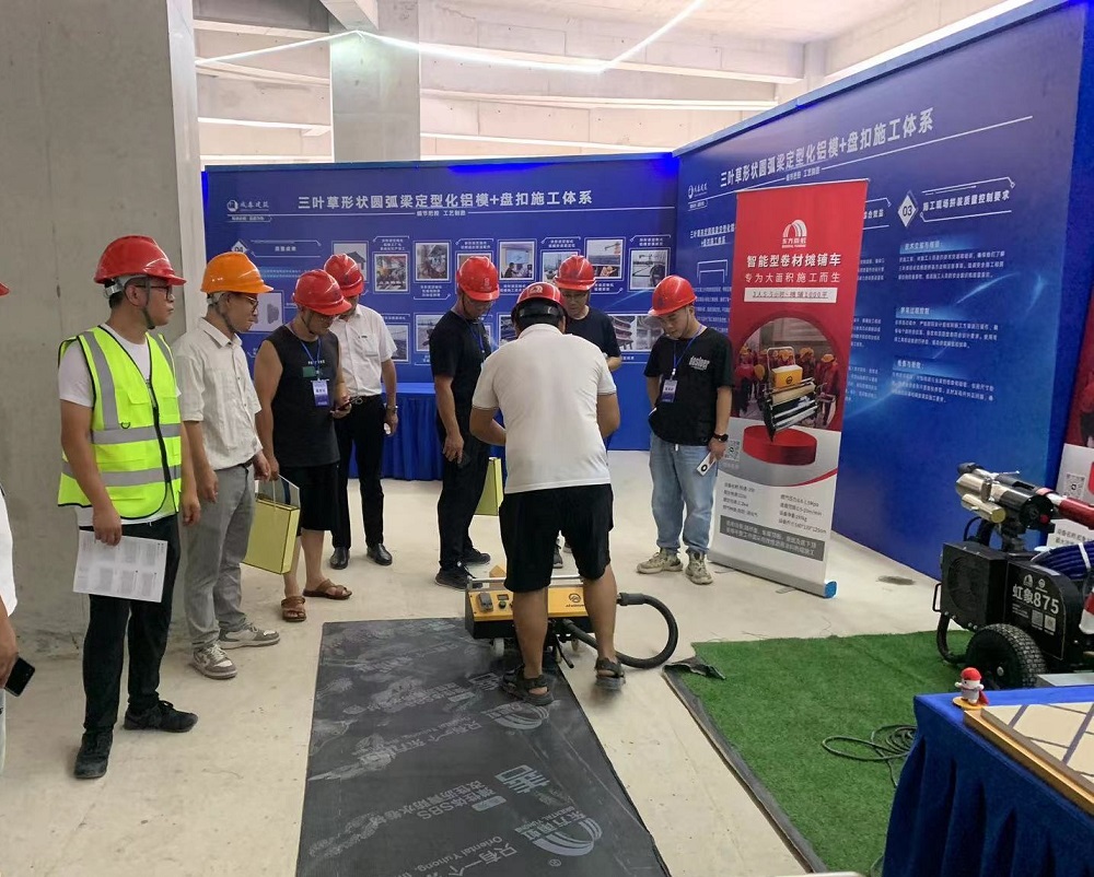 活动现场,尊龙凯时技术人员详细讲解金属屋面TPO等产品的性能优势、环保特性及应用场景,并将材料选择、安全规范、施工工法等影响工程效果关键因素融于底板、侧墙、顶板防水施工打样展示。此外,通过操作智能卷材摊铺机、聚氨酯喷涂机等设备,全方位呈现其功能与特性,让现场观众近距离感受产品的独特性。